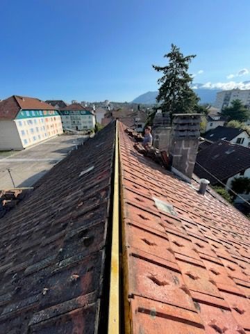 Galerie Démoussage Démoussage toiture Entretien Rénovation tuiles Peinture Hydrofuge Nettoyage Nettoyage de gouttières Nettoyage Façade Nettoyage Dalles Entretien Maçonnerie Faitage Pied de cheminée Rives